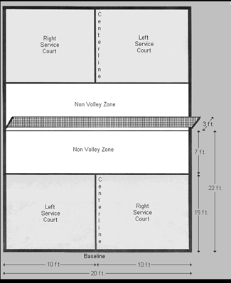 - There is a kitchen area, an area that is 7 ft from the net marked by lines. The Kitchen is like a barrier; you can only step in the kitchen without it being a fault if the ball lands in the kitchen. Then you must step back out of the kitchen before the ball is returned, and you hit it again.