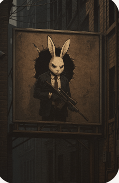 Lawrence quickly flew over towards the billboard. He landed on top. He looked down in between the billboard walls and saw Cotton, assembling his gun. Cotton looked up at Lawrence. “How is the alley looking?”